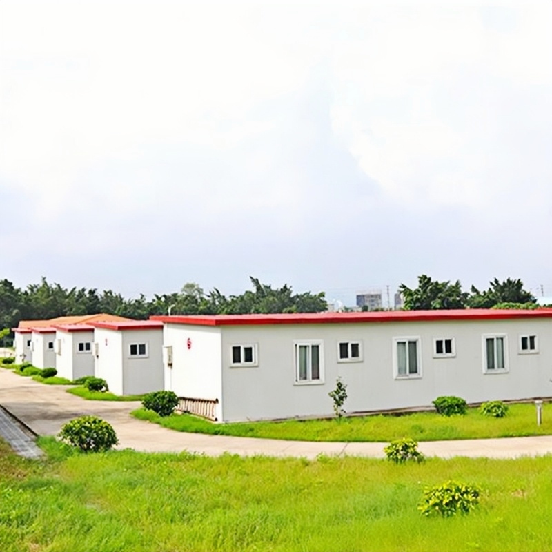 T-förmiges Fertighaus Das Fertighaus T-Haus besteht hauptsächlich aus einer Stahlkonstruktion mit Wänden aus Sandwichpaneelen. Die Gesamtkonstruktion ist stabil und bietet hervorragende Eigenschaften hinsichtlich Wind- und Erdbebenbeständigkeit sowie Wärme- und Schalldämmung. Es eignet sich für die Serienproduktion und individuelle Konfigurationen. Das Haus kann wiederholt demontiert und an einem anderen Ort wiederaufgebaut werden. Es bietet ein gutes Preis-Leistungs-Verhältnis und findet breite Anwendung in Bauarbeiterlagern, temporären Büros, Arbeiterwohnheimen und Notumsiedlungsprojekten.